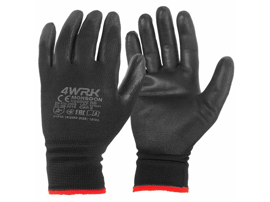 Rukavice kombinují pevnost a pohodlí, takže chrání ruce, ale zároveň tě nijak neomezují v pohybu. Dlaň je potažená vrstvou černého latexu, která zajišťuje jistý úchop balíků, beden nebo nářadí – i když je něco kluzké nebo mokré.